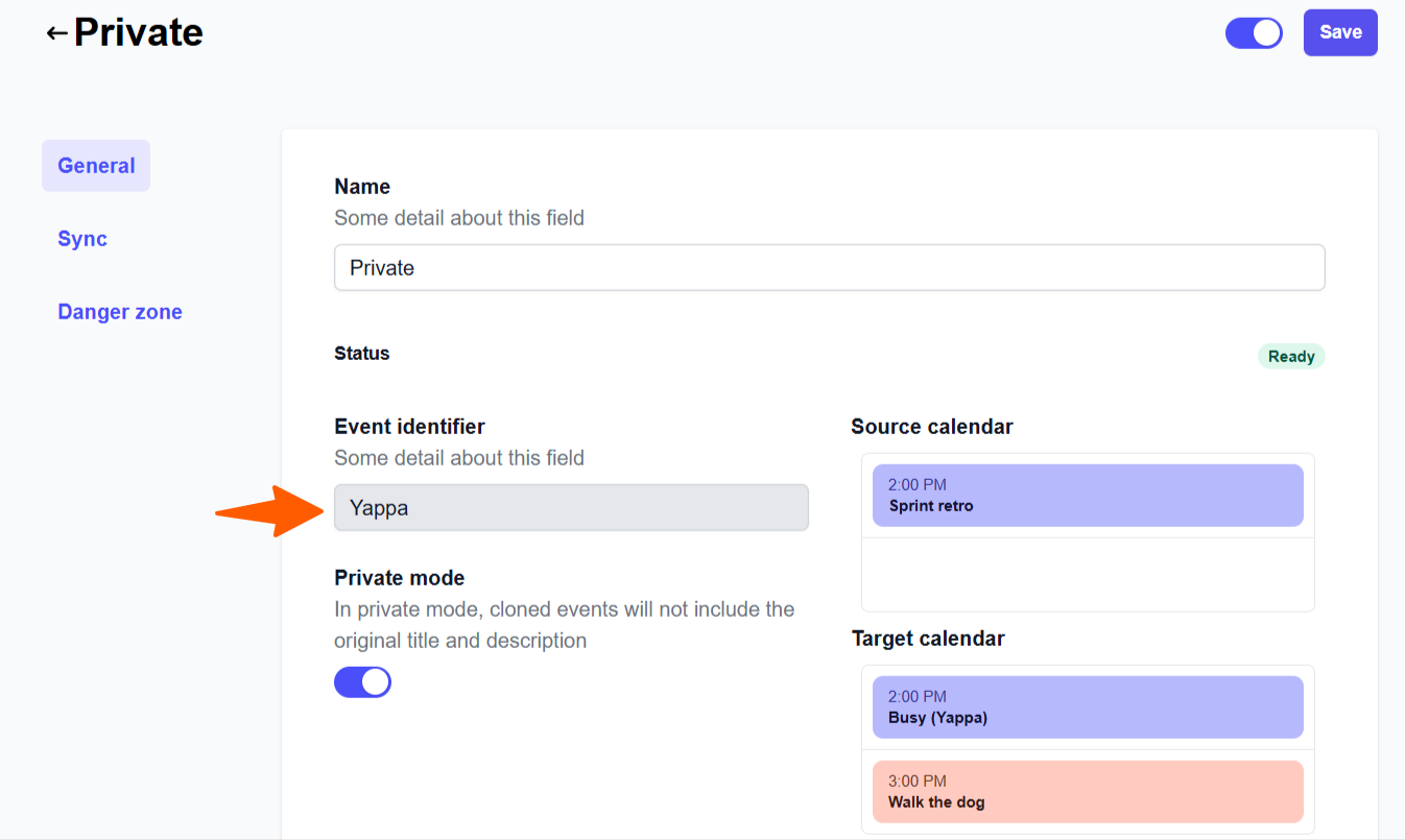 Instead of the default "Busy (Yappa)" identifier, it would be helpful to have the option to customize this label, such as “Busy (Personal)” or “Busy (Asociatia Supereroilor).” This flexibility would allow me to differentiate between personal and business events when populating my business calendar with personal blocked time slots. It would improve organization and make it easier to manage multiple calendar types within Yappa.